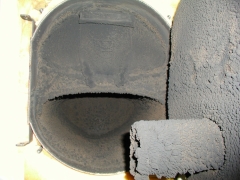 Rauchrohr fast komplett zugerußt. Lebensgefahr für den Betreiber